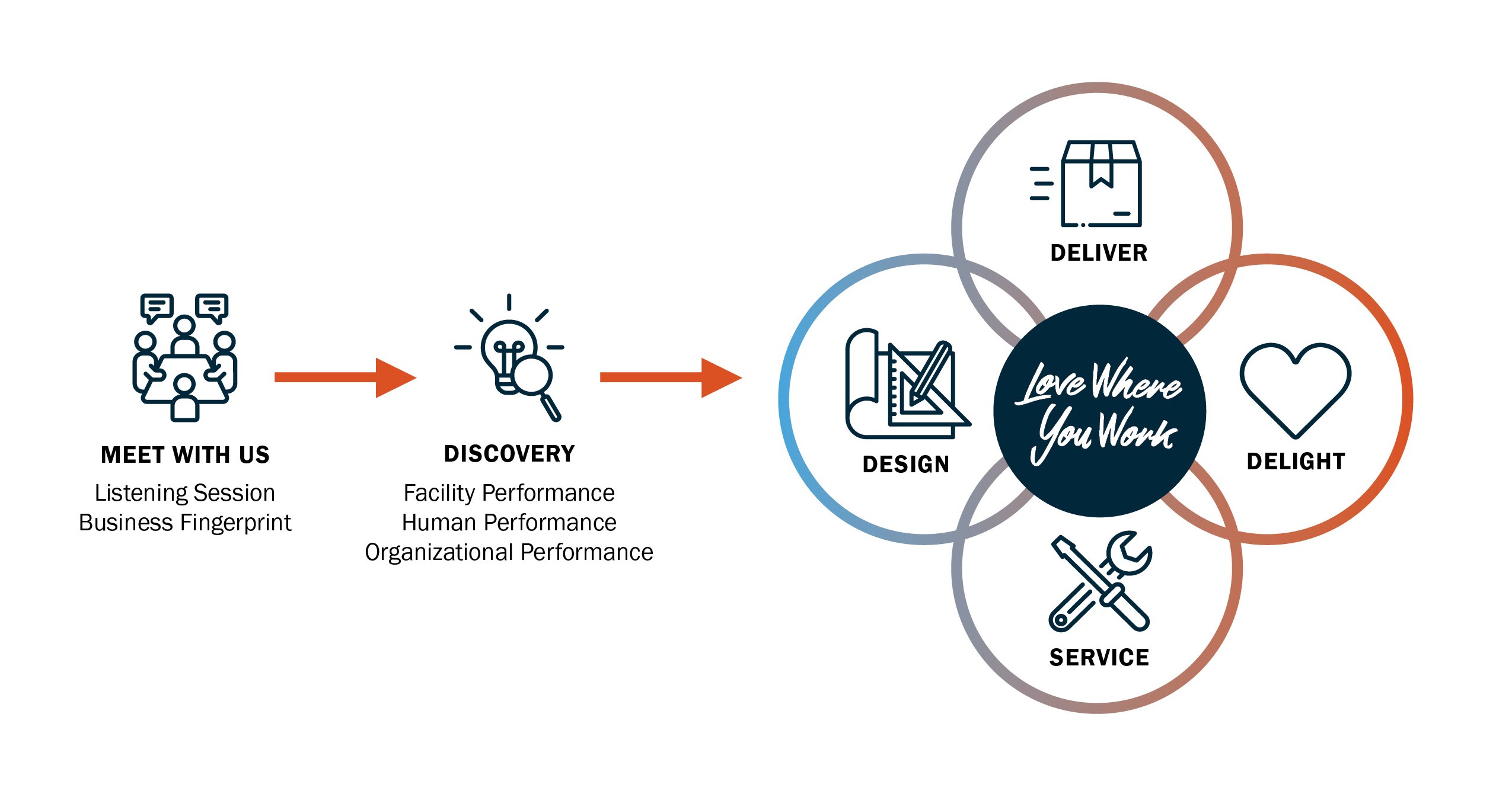 Our team is dedicated to being more than just a vendor. We provide products and services that are focused on meeting your business objectives in the context of your workspace, aligning your people to increase employee engagement and empowering your culture to thrive.